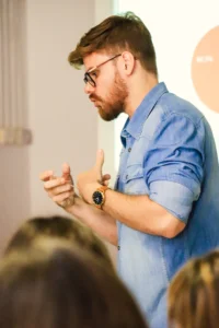 As aulas ministradas pelo psicólogo são cuidadosamente elaboradas para proporcionar um aprendizado profundo e significativo. Focadas em temas como saúde mental, desenvolvimento pessoal e habilidades emocionais, as aulas oferecem ferramentas práticas e conhecimentos valiosos. Com uma abordagem didática e interativa, Raphael cria um ambiente acolhedor e inspirador, facilitando o crescimento e o aprofundamento em temas profundos acerca do humano.